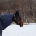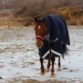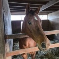 バルクは放牧地でも無口を付けています。(他のコは付けていません)なぜかというと、帰りの時に「帰りたくな~」と無口を付けさせてくれないからだそうです。でも、手綱を付けると大人しく帰ってきます。バル君がCalm days farmさんに来たのは、昨年の6月それまで、乗馬クラ