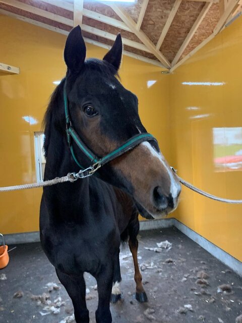 馴致も兼ねて張り綱で手入れをしていますが、もうすっかり大人しく立っていられるようになりました🐴