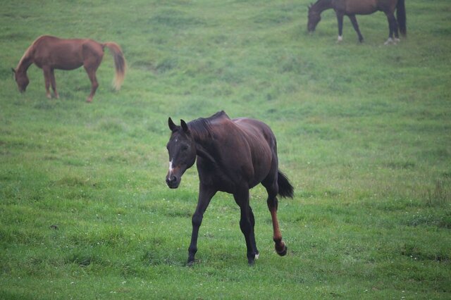 健常な馬であれば綺麗な歩様ですが、ラバーの歩様はぎこちないです。