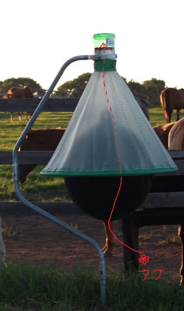 2アブは上にしか飛ばない為、傘の上部に付いている緑のカップの部分に入っていきます。