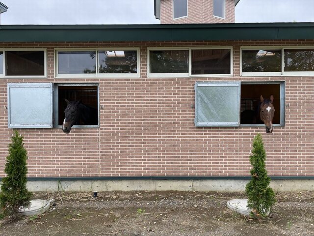 集牧後の食事が終わり、まったりしている2頭。