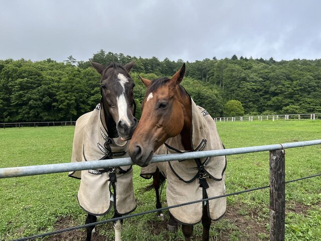 2022年07月22日 相変わらず こちらも、一緒に放牧して1か月が過ぎました。 ベガ君(左)チャーくん(右)この2頭は、最初からこの距離感だったので”相変わらず”という感じです。お互いが好き同士なんだと、よくわかります。”馬が合う同士”幸せな2頭です。 ※草刈りの音が入っています**************************グランデラバーの会HPグランデラバーの会員を募集しています。入会申込、アルバム、設立の趣旨が確認できますInstagram動画もアップしてますtwitterブログの更新等のお知らせや、情報など発信していきます 「キャプテンベガ」カテゴリの最新記事 < 前の記事次の記事 > コメント コメント一覧 管理人 2022年07月23日 21:41 >>1 相性は大事ですね。 大型の動物は、仲裁が出来ませんものね ひろこ 2022年07月22日 21:59 ホントに仲良しね☺️❤️ 相性って大事だね…🍀 きっと心も穏やかでいられるね😊 コメントフォーム 名前 コメント 記事の評価 リセット リセット 顔 星 情報を記憶 コメントを投稿する