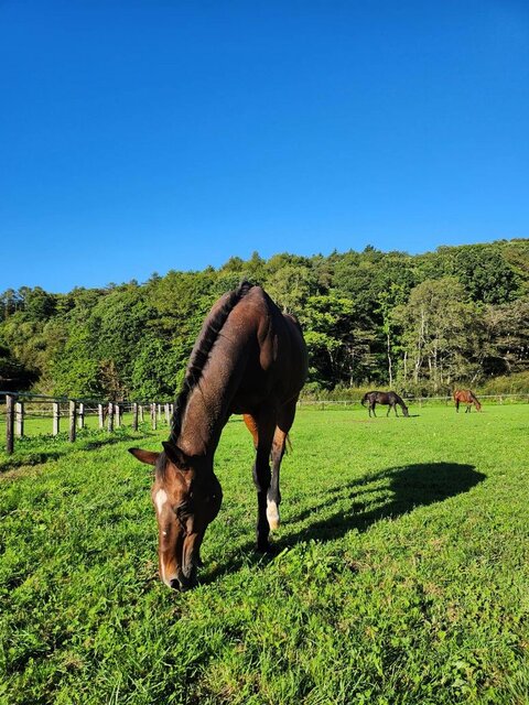 2023年09月29日 アップ 昨夜は発作がありませんでした。ウインダムです。今の時期、草を食べる事に一生懸命でアップの写真はなかなか撮れないのですが、どアップです。雲ひとつ無い、秋晴れですね。頂いた写真です。ありがとうございました。**************************グランデラバーの会HPグランデラバーの会員を募集しています。入会申込、アルバム、設立の趣旨が確認できますInstagram動画もアップしてますtwitterブログの更新等のお知らせや、情報など発信していきます 「ダイワウィンダム」カテゴリの最新記事 < 前の記事次の記事 > コメント コメント一覧 ひろこ 2023年09月29日 23:27 お爺ちゃま☺️✨ とは思えない 男前な🤭❤️ 素敵なショットいただきましたね✨ 早く君たちに逢いたいよ🍀 コメントフォーム 名前 コメント 記事の評価 リセット リセット 顔 星 情報を記憶 コメントを投稿する