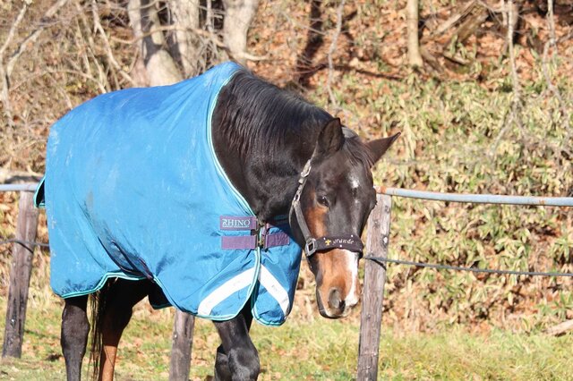 帰りたがるので、暖かい馬房に帰ってゆったりしています
