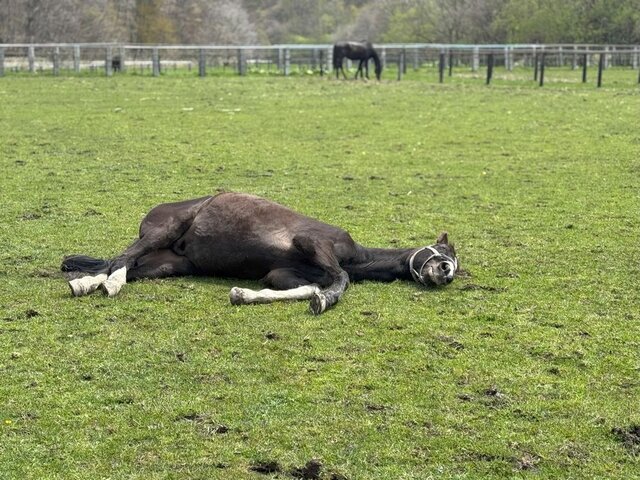 2025年05月08日 居眠り 放牧地の真ん中で、気持ちよさそうに眠るキャプテンベガ君仲間達は、それぞれで草を食べていますが安心しきって、寝ています暫くすると、起き上がりチャー君にちょっかいを掛けていたそうです22歳ですが、お子ちゃまなベガ君です昨夜は発作がありませんでした**************************グランデラバーの会HPグランデラバーの会員を募集しています。入会申込、アルバム、設立の趣旨が確認できますInstagram動画もアップしてますXブログの更新等のお知らせや、情報など発信していきます 「キャプテンベガ」カテゴリの最新記事 < 前の記事次の記事 > コメント コメントフォーム 名前 コメント 記事の評価 リセット リセット 顔 星 情報を記憶 コメントを投稿する