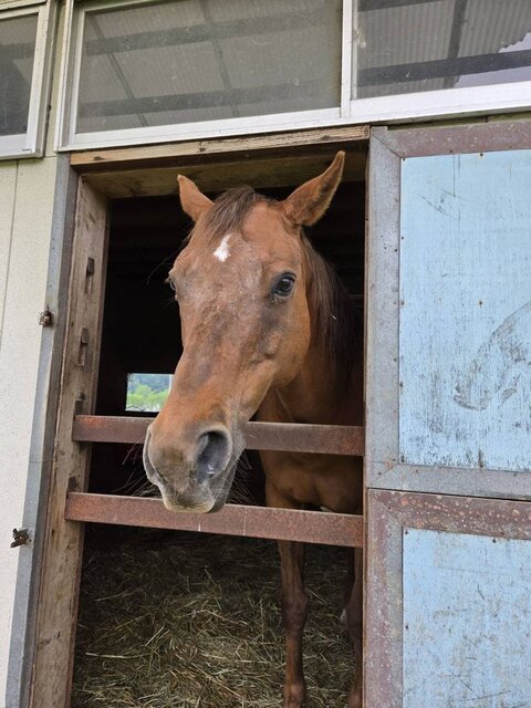 今日も暑い時間は、厩舎で涼んでいます