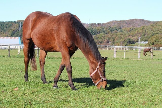 お仕事といっても、放牧仲間がいない馬の相棒として